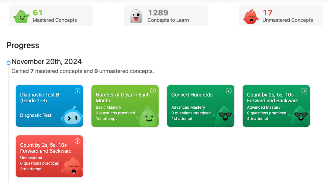 In a recent implementation, 45 students mastered over 4,000 math concepts across Grades 1-5 within two months.
